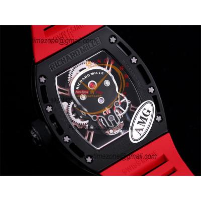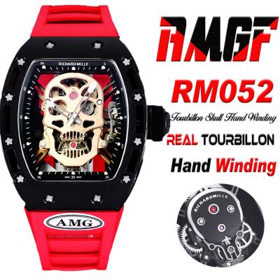 RM052 Real Tourbillon Hand Winding Mens Watch Best Edition AMGF DLC All Black Gold Skull Dial Red Rubber Strap CHS