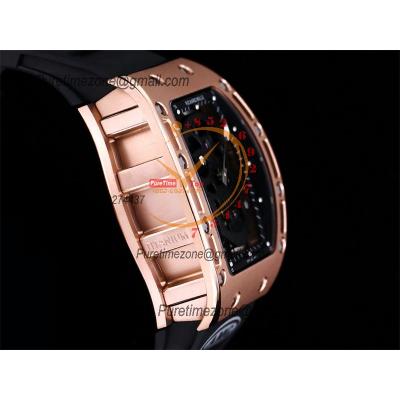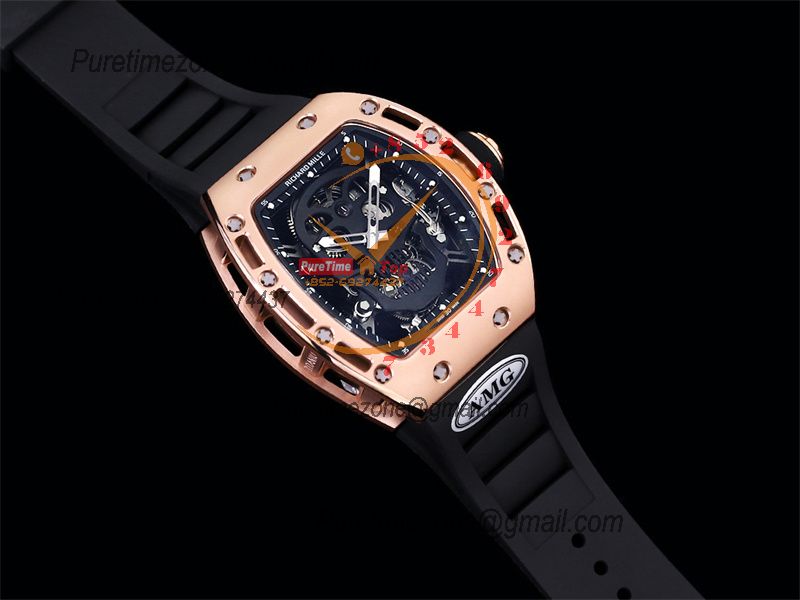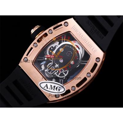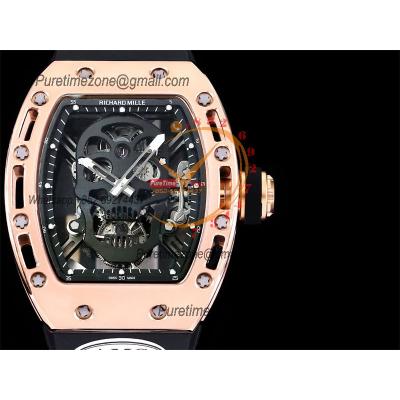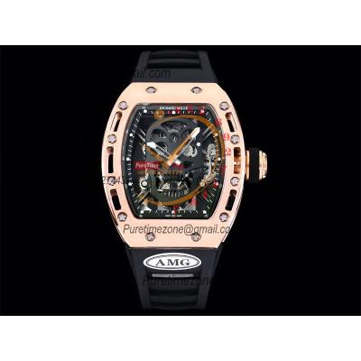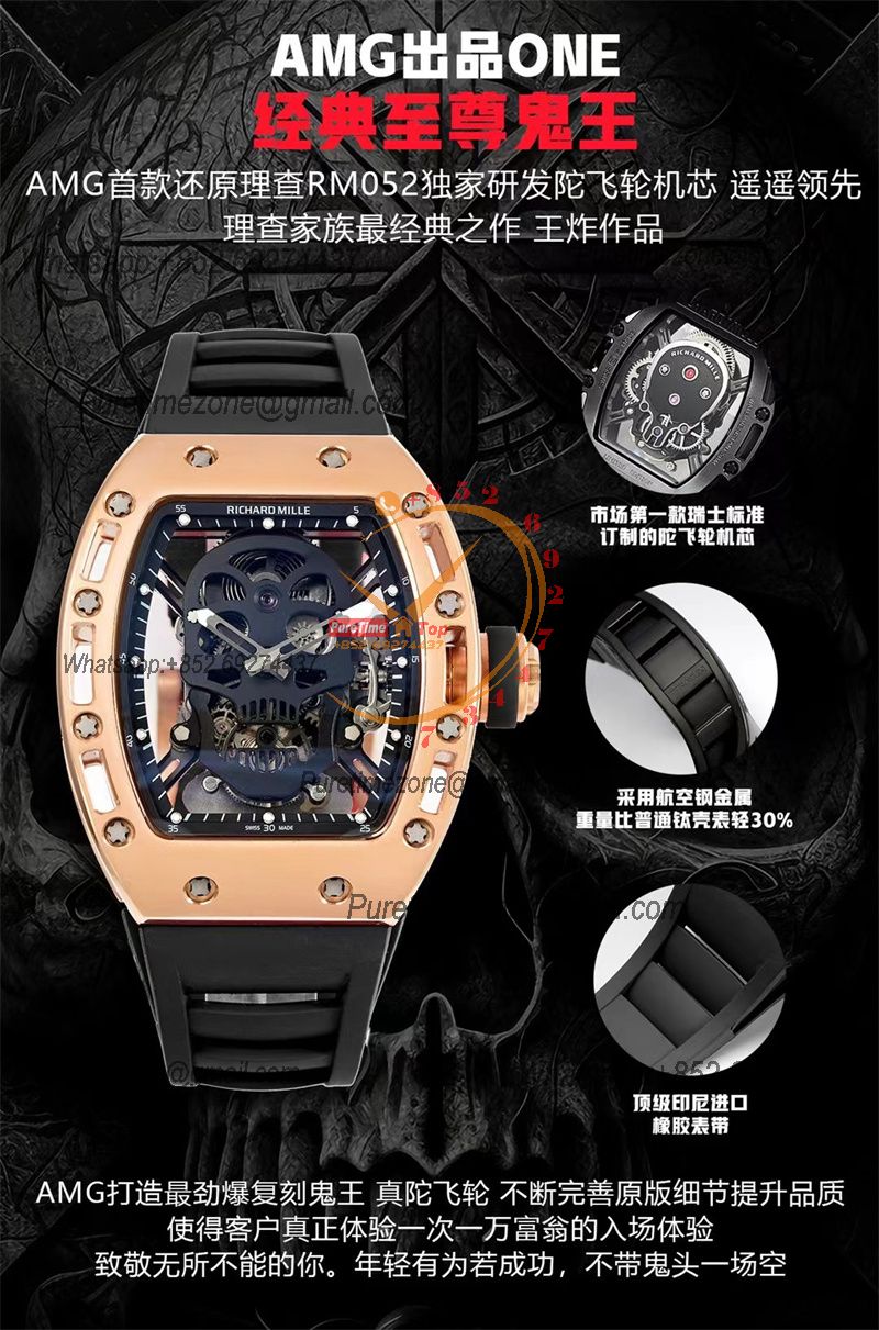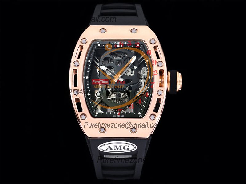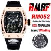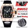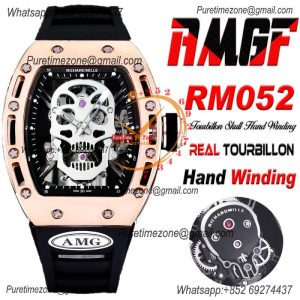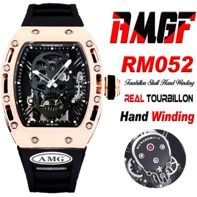 RM052 Real Tourbillon Hand Winding Mens Watch Best Edition AMGF RG Black Skull Dial Black Rubber Strap CHS