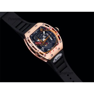 RM011 Felipe Massa A7750 Automatic Chronograph Mens Watch RMF Best Edition SS Black Dial Red Rubber Strap CHS