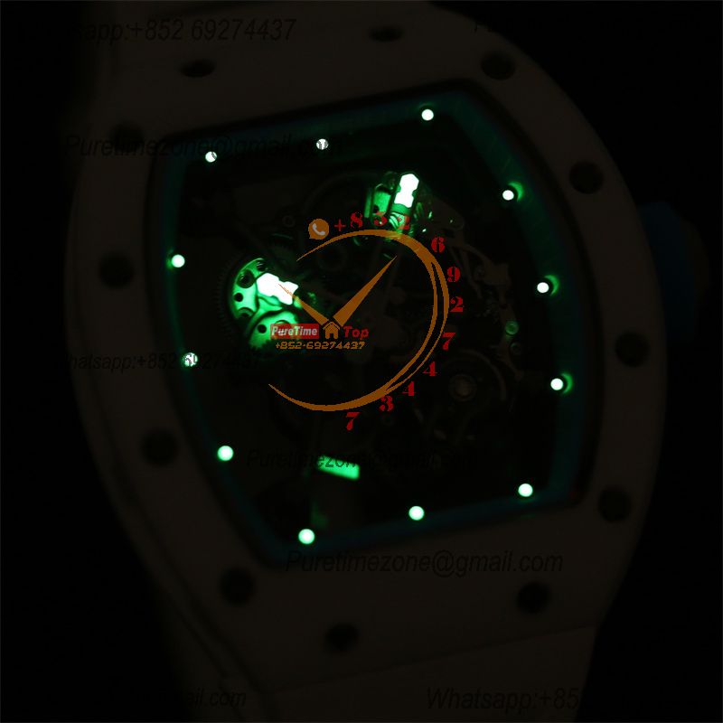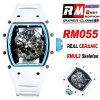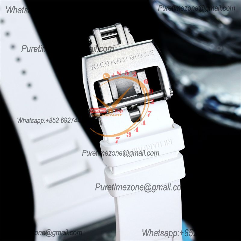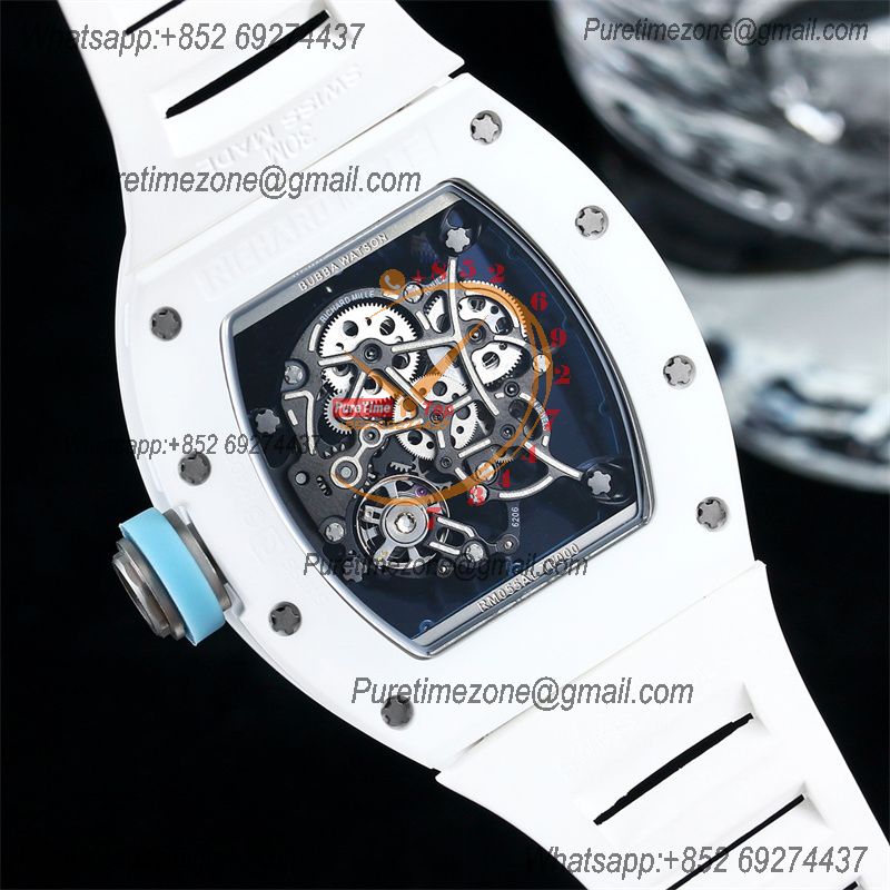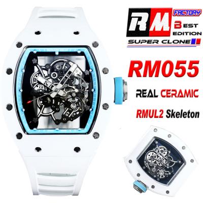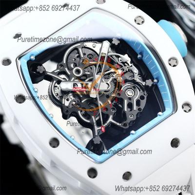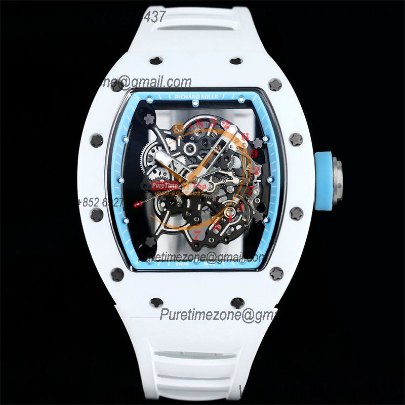 RM055 RMUL2 Automatic Mens Watch Best Edition RMF White Ceramic Blue Inner Skeleton Dial Rubber Strap CHS