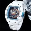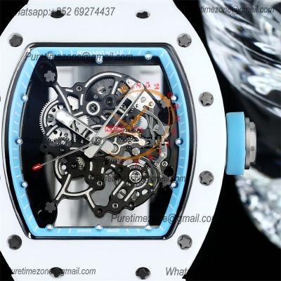 Home Richard Mille RM055 RMUL2 Automatic Mens Watch Best Edition RMF White Ceramic Blue Inner Skeleton Dial Rubber Strap CHS