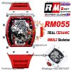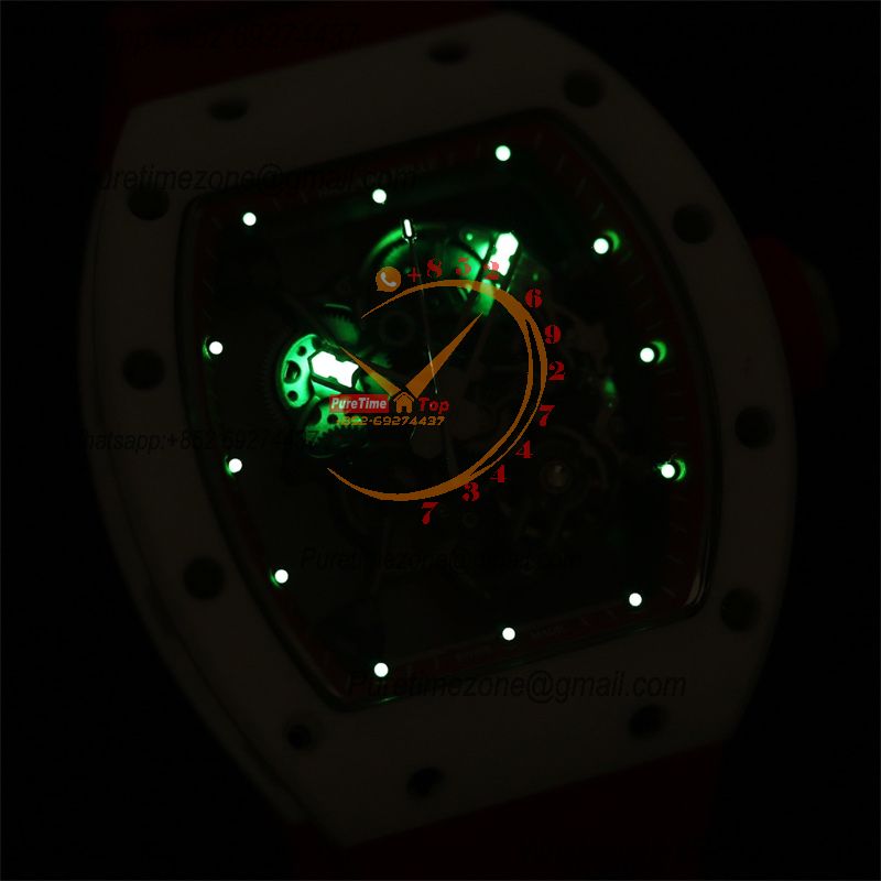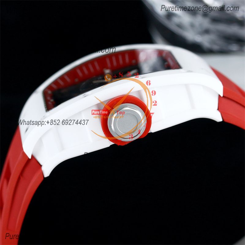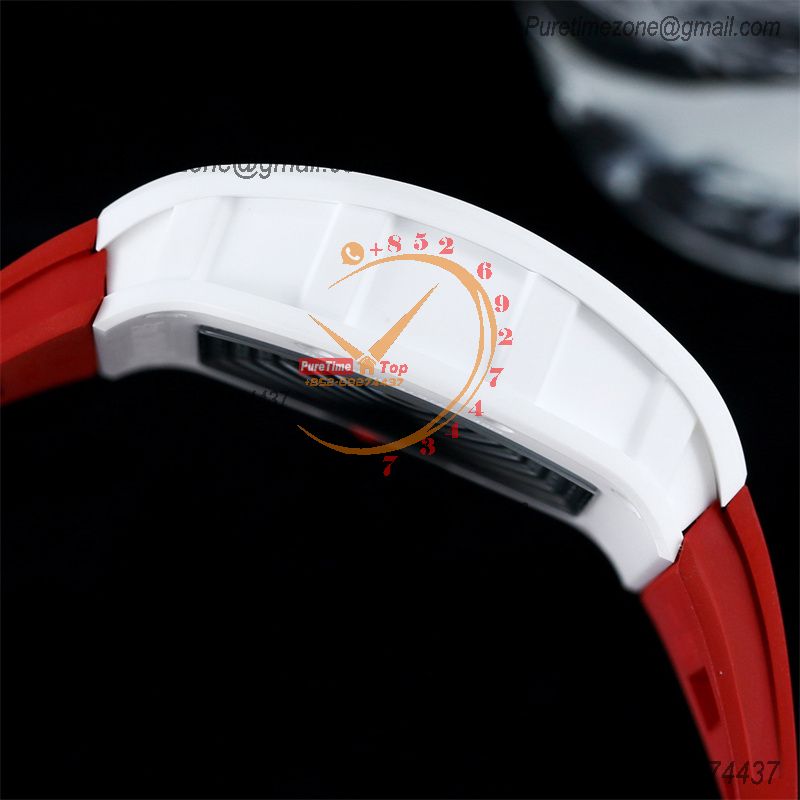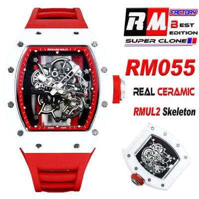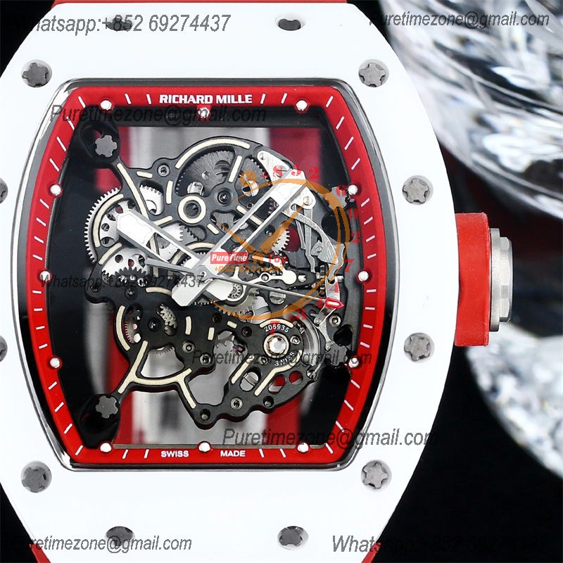 RM055 RMUL2 Automatic Mens Watch Best Edition RMF White Ceramic Skeleton Dial Red Rubber Strap CH