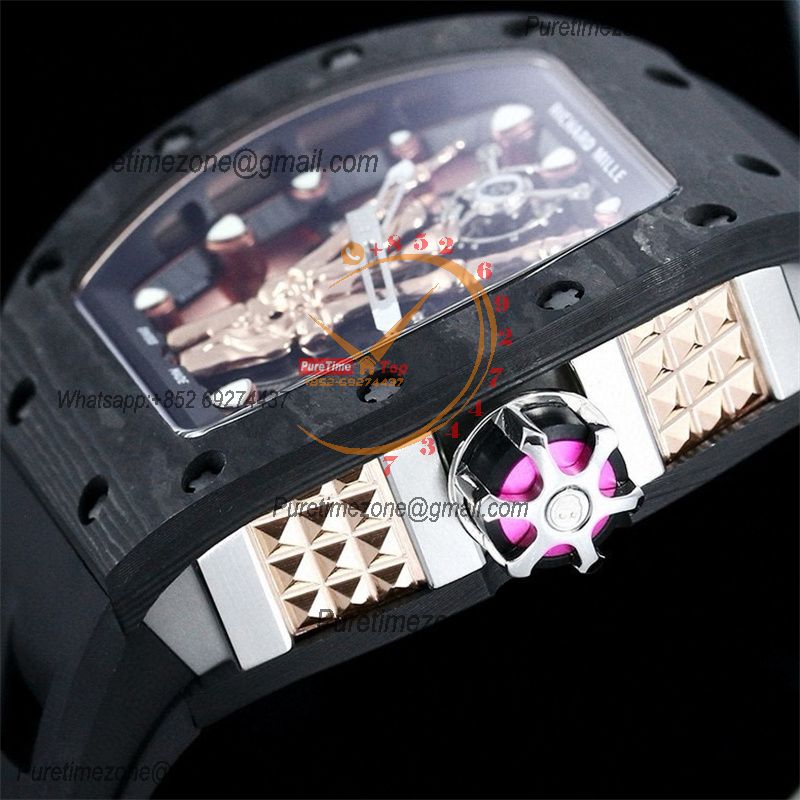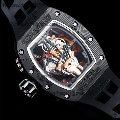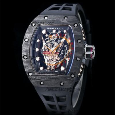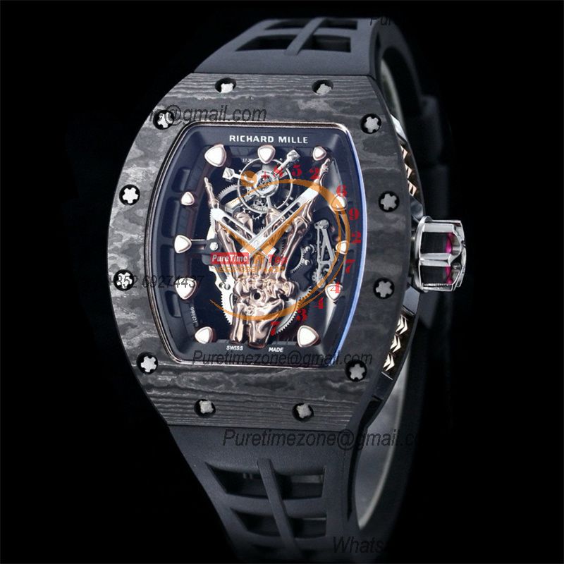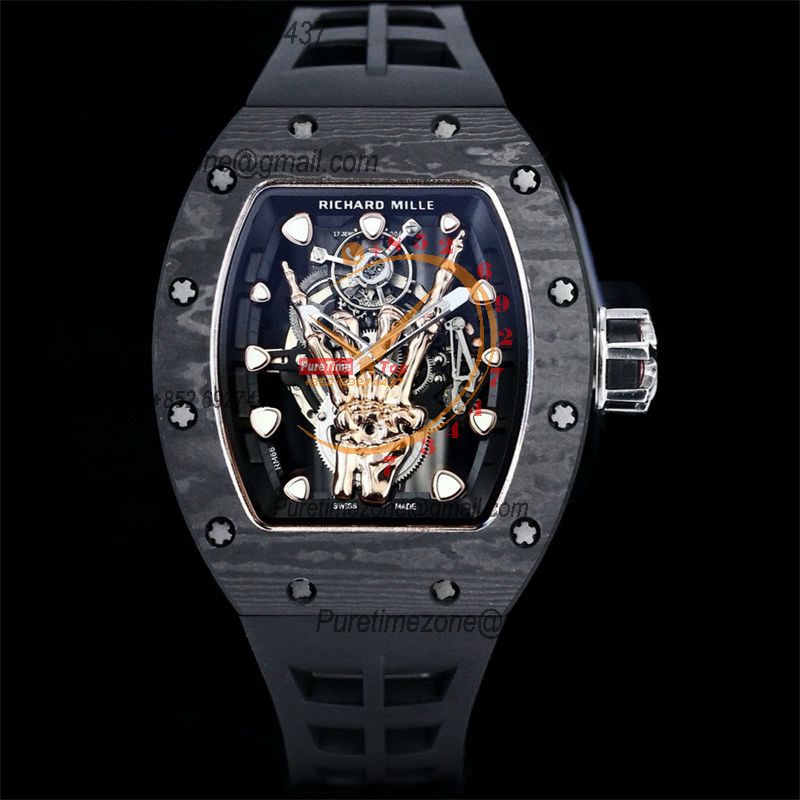 RM12-01 José Balvin Automatic Tourbillon Mens Watch RMF Carbon Fiber Skeleton Dial All Black Rubber Strap CHS AAA