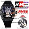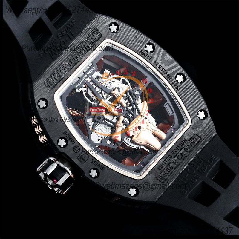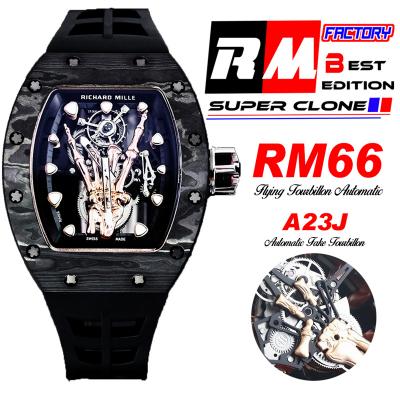 Home Richard Mille RM066 Rock & Roll Flying Tourbillon Automatic Mens Watch RMF Carbon Fiber All Black Rubber Strap CHS