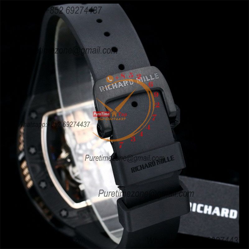 RM011 NTPT Carbon Chrono Felipe Massa A7750 Automatic Chronograph Mens Watch RMF Best Edition Black Rubber CHS