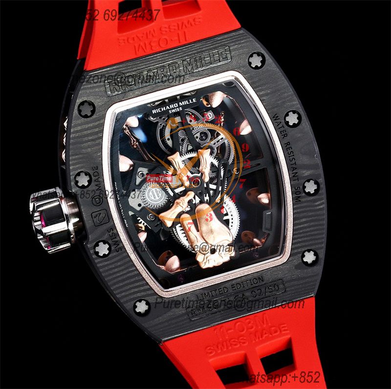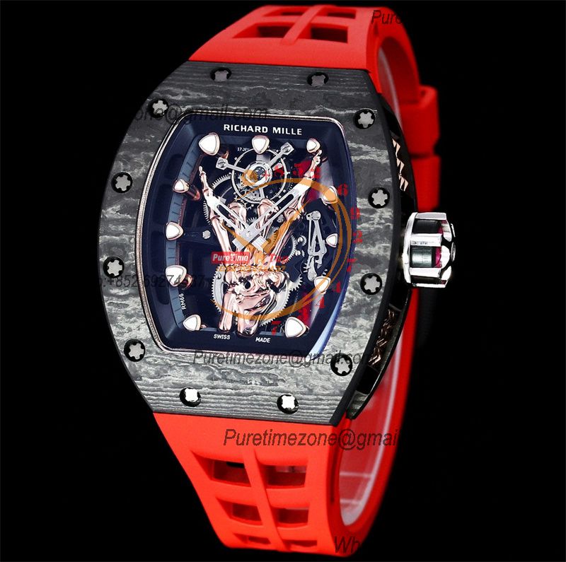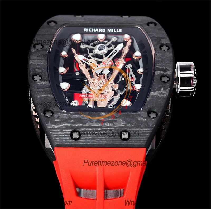 RM12-01 José Balvin Automatic Tourbillon Mens Watch RMF Carbon Fiber Skeleton Dial All Black Rubber Strap CHS AAA