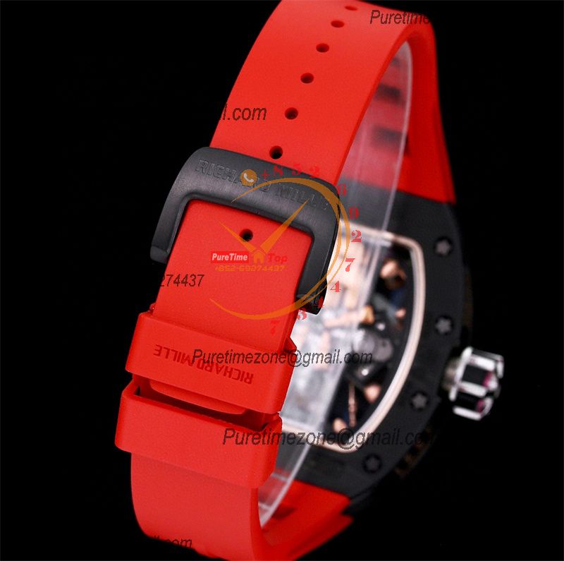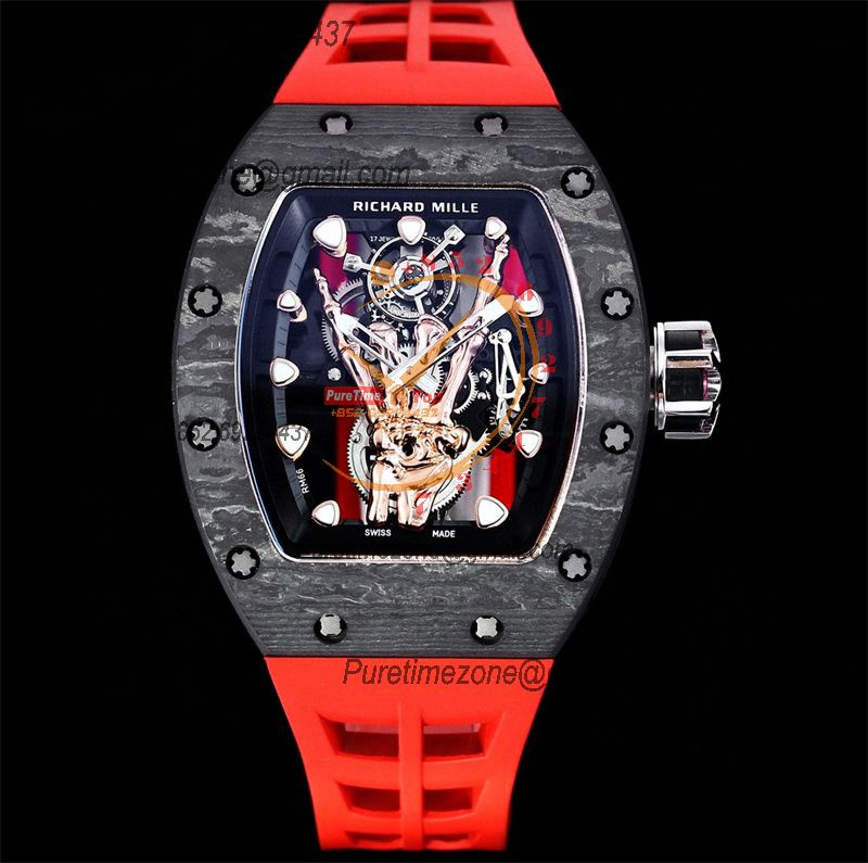 RM066 Rock & Roll Flying Tourbillon Swiss Quartz Mens Watch RMF Black Carbon Fiber Red Rubber Strap CHS