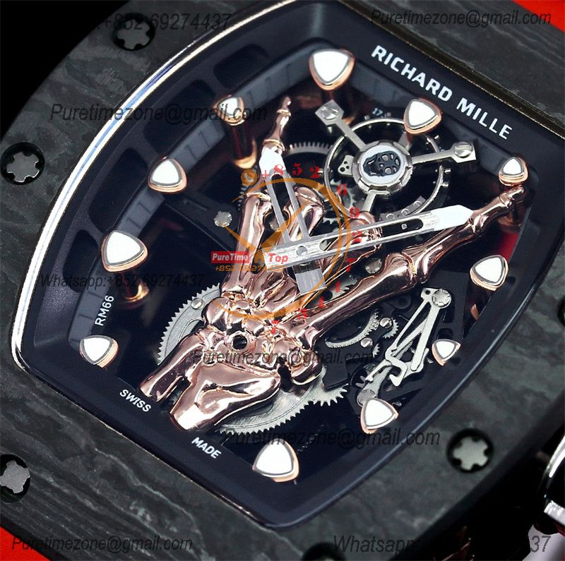 Home Richard Mille RM066 Rock & Roll Flying Tourbillon Swiss Quartz Mens Watch RMF Black Carbon Fiber Red Rubber Strap CHS