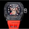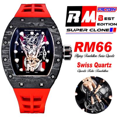 RM066 Rock & Roll Flying Tourbillon Swiss Quartz Mens Watch RMF Black Carbon Fiber Red Rubber Strap CHS