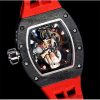 Home Richard Mille RM066 Rock & Roll Flying Tourbillon Swiss Quartz Mens Watch RMF Black Carbon Fiber Red Rubber Strap CHS
