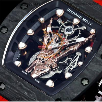 RM12-01 José Balvin Automatic Tourbillon Mens Watch RMF Carbon Fiber Skeleton Dial All Black Rubber Strap CHS AAA