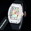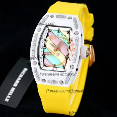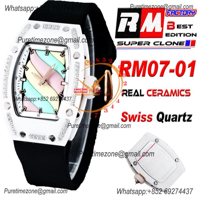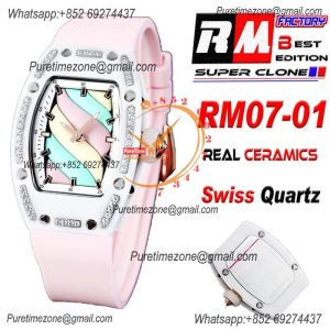 Home Richard Mille RM07-01 Swiss Quartz Womens Watch RMF White Ceramic Diamond Bezel Marshmallow Dial Black Rubber Ladies