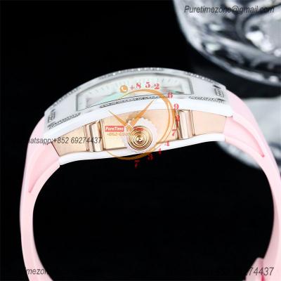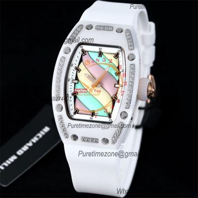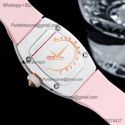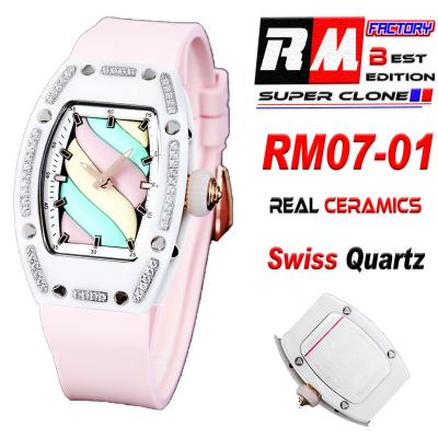 Home Richard Mille RM07-01 Swiss Quartz Womens Watch RMF White Ceramic Diamond Bezel Marshmallow Dial Pink Rubber Ladies