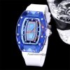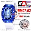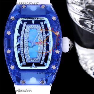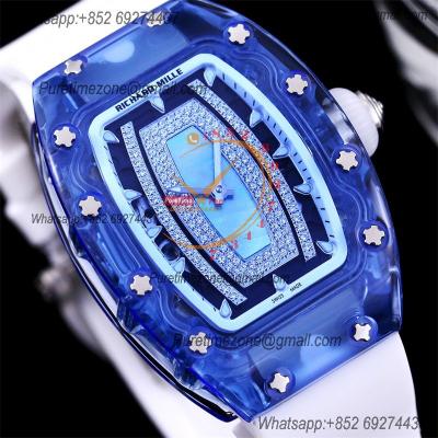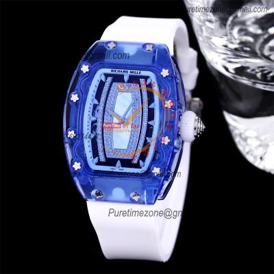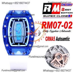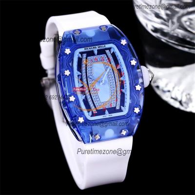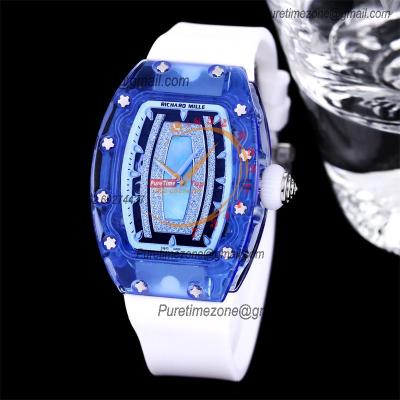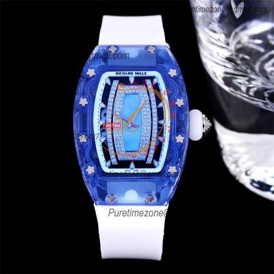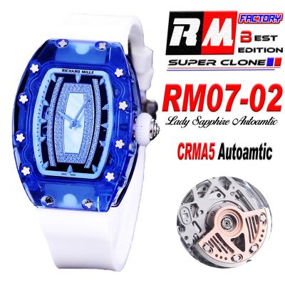 Home Richard Mille RM07-02 CRMA5 Automatic Womens Watch RMF Blue Transparent Case Diamonds Dial White Rubber Ladies