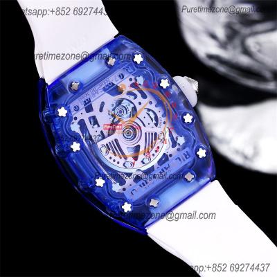 RM07-02 CRMA5 Automatic Womens Watch RMF Blue Transparent Case Diamonds Dial White Rubber Ladies