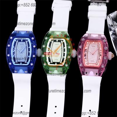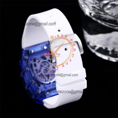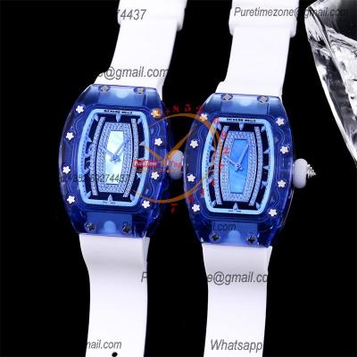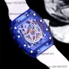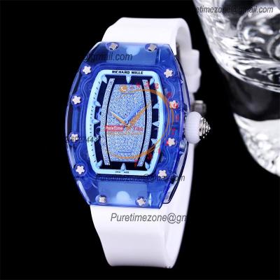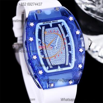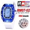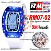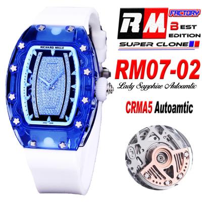 Home Richard Mille RM07-02 CRMA5 Automatic Womens Watch RMF Blue Transparent Case Diamonds Dial White Rubber Ladies