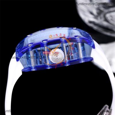 RM07-02 CRMA5 Automatic Womens Watch RMF Blue Transparent Case Diamonds Dial White Rubber Ladies