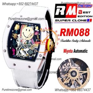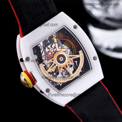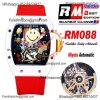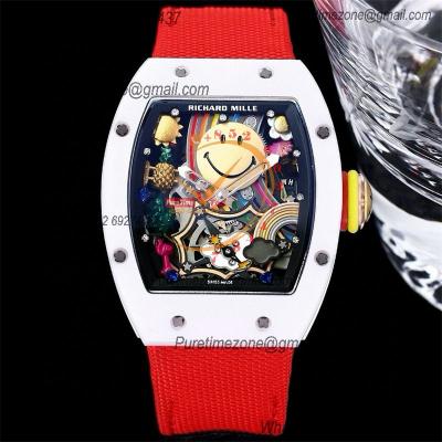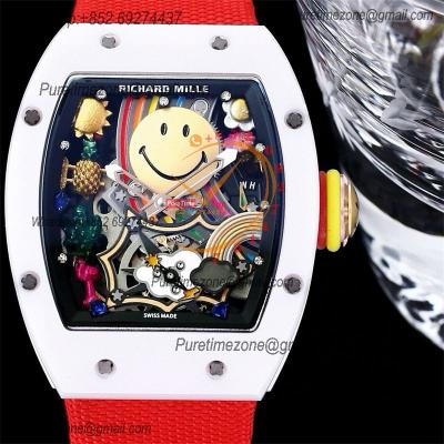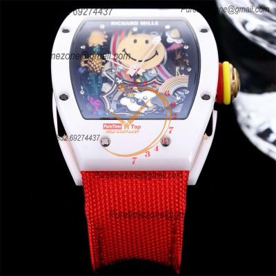 RM088 Tourbillon Smiley Miyota 8215 Automatic Mens Watch RMF White Ceramic Skeleton Dial Red Nylon