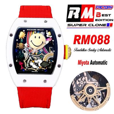 Home Richard Mille RM088 Tourbillon Smiley Miyota 8215 Automatic Mens Watch RMF White Ceramic Skeleton Dial Red Nylon