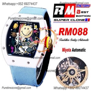 RM088 Tourbillon Smiley Miyota 8215 Automatic Mens Watch RMF White Ceramic Skeleton Dial Blue Nylon $825.00 $550.00