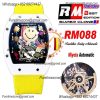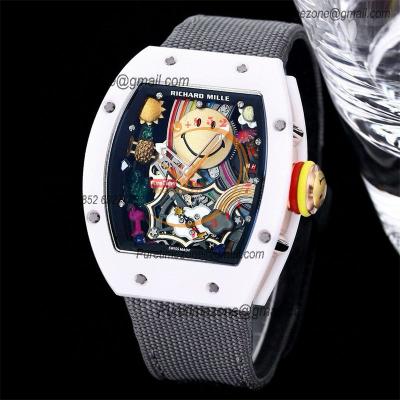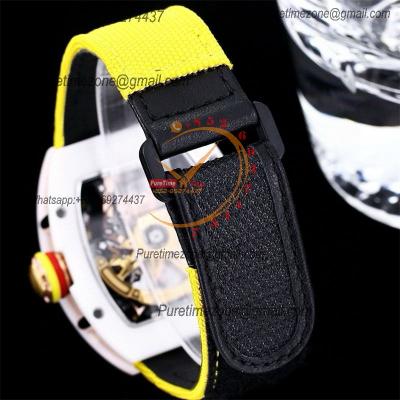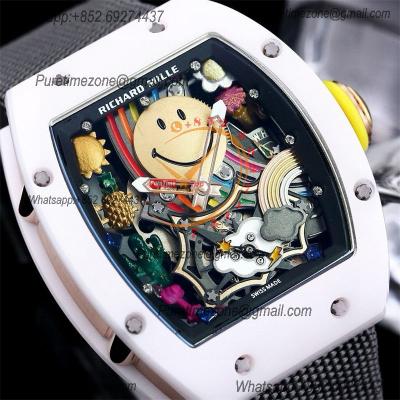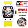RM088 Tourbillon Smiley Miyota 8215 Automatic Mens Watch RMF White Ceramic Skeleton Dial Yellow Nylon