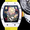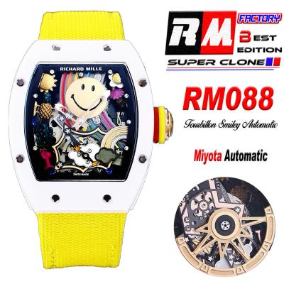 Home Richard Mille RM088 Tourbillon Smiley Miyota 8215 Automatic Mens Watch RMF White Ceramic Skeleton Dial Yellow Nylon