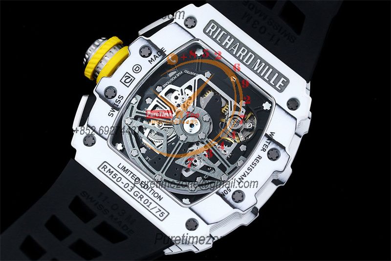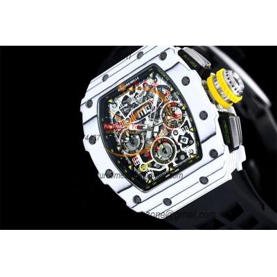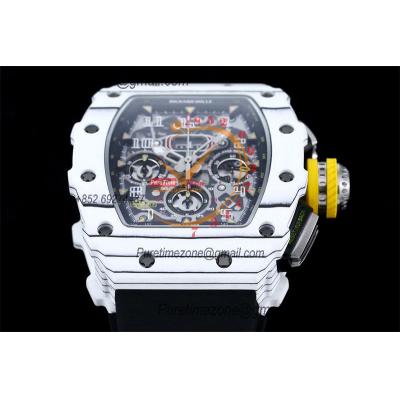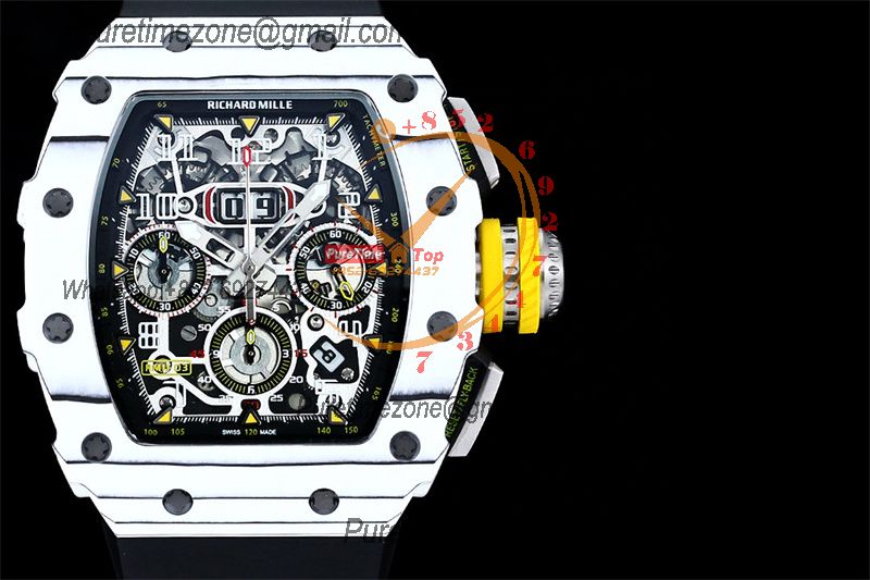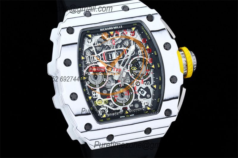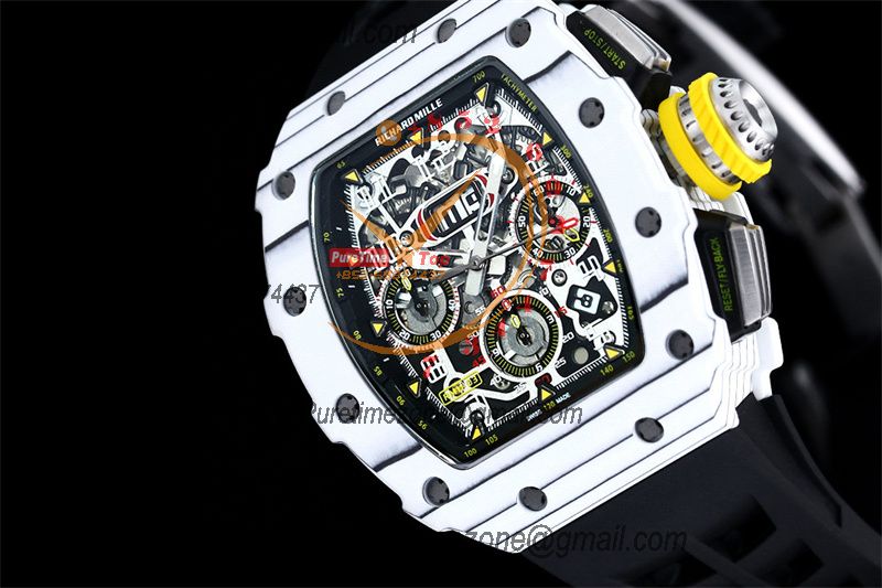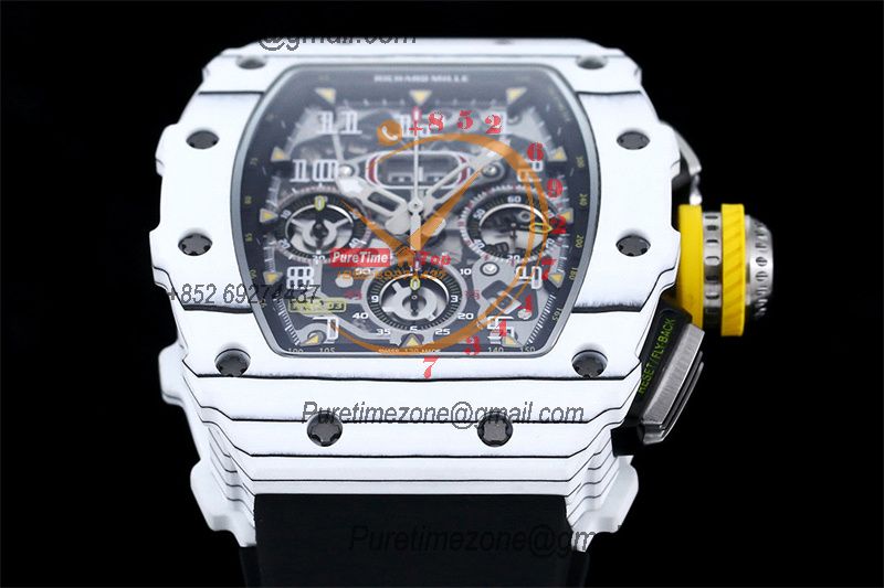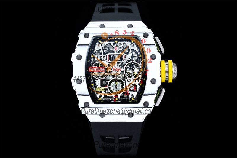 RM11-03 FQ White NTPT Quartz Carbon Automatic Flyback Chronograph Mens Watch ZF Best Edition Black Rubber Strap CHS