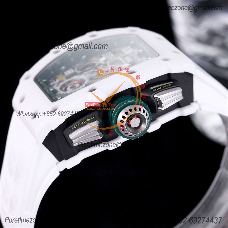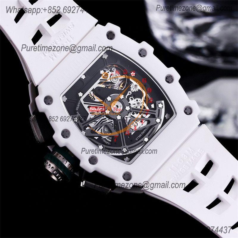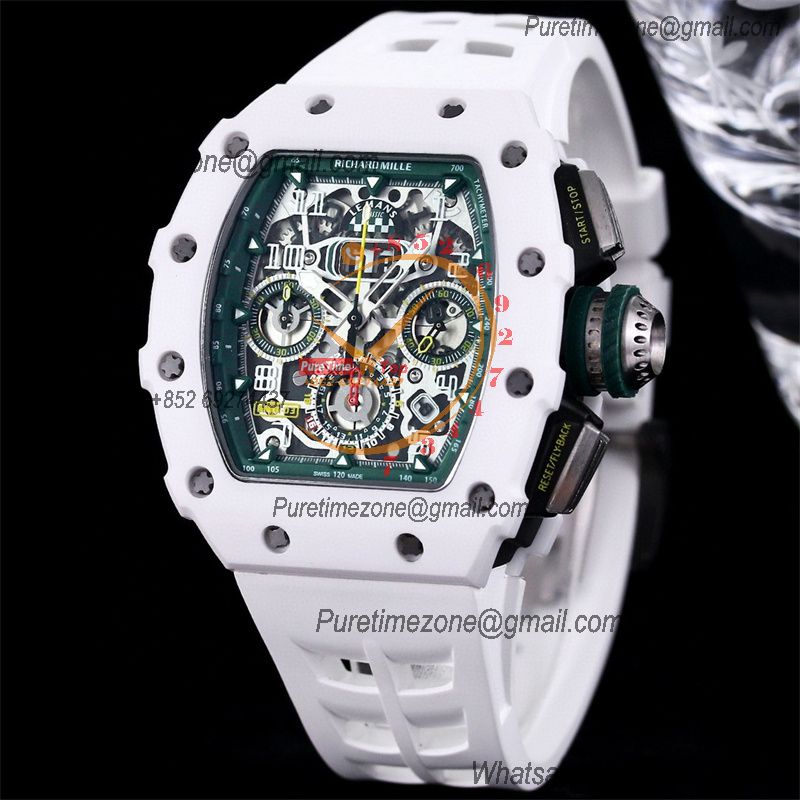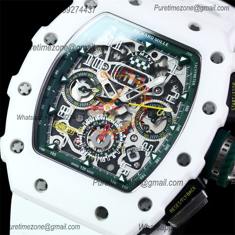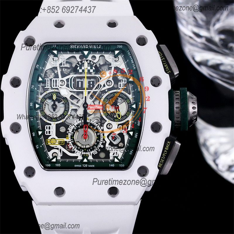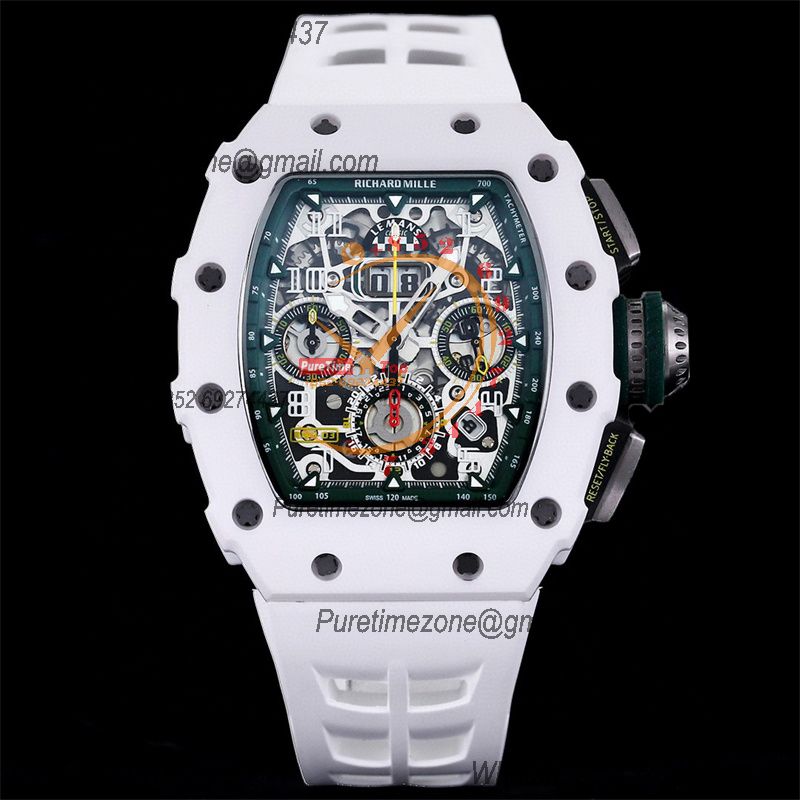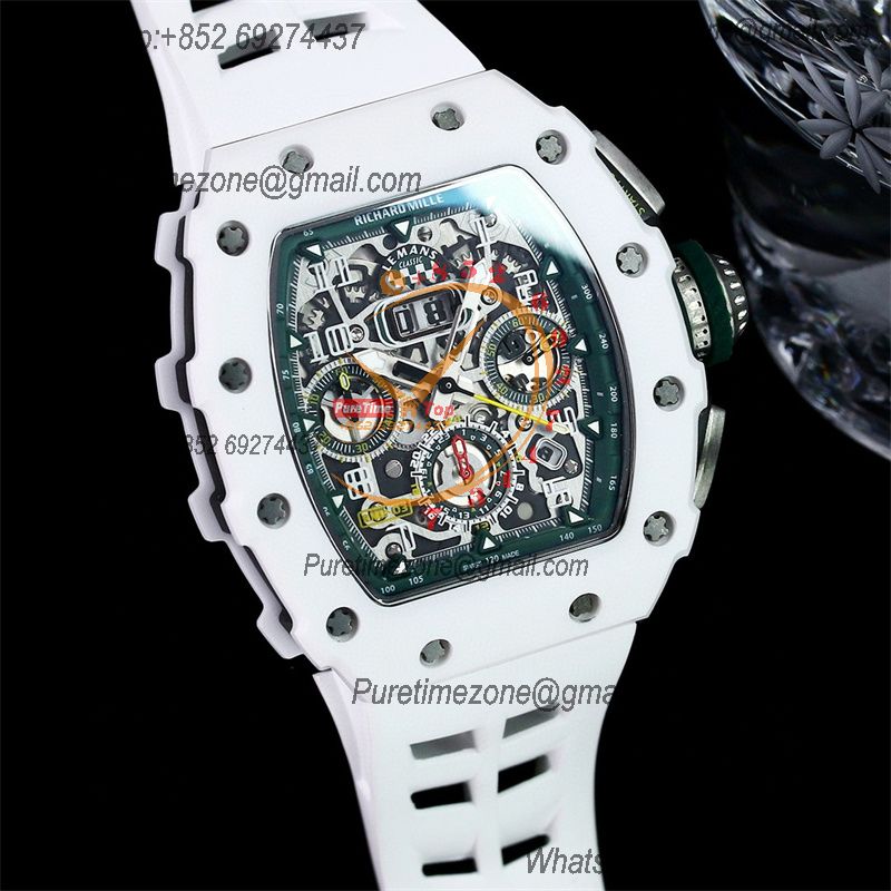 Home Richard Mille RM11-03 White Ceramic A7750 Automatic Chronograph Mens Watch RMF Best Edition Green Dial White Rubber Strap CHS