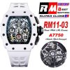 Home Richard Mille RM11-03 White Ceramic A7750 Automatic Chronograph Mens Watch RMF Best Edition Green Dial White Rubber Strap CHS
