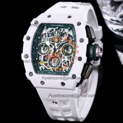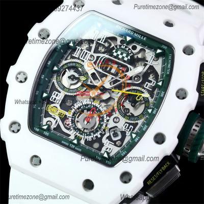 RM11-03 White Ceramic A7750 Automatic Chronograph Mens Watch RMF Best Edition Green Dial White Rubber Strap CHS