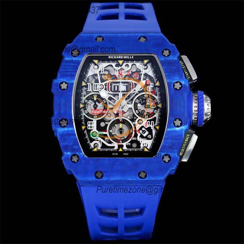 RM011 Felipe Massa A7750 Automatic Chronograph Mens Watch RMF Best Edition SS Black Dial Blue Rubber Strap CHS