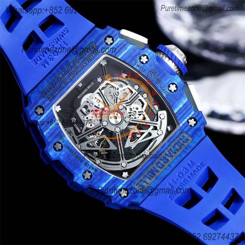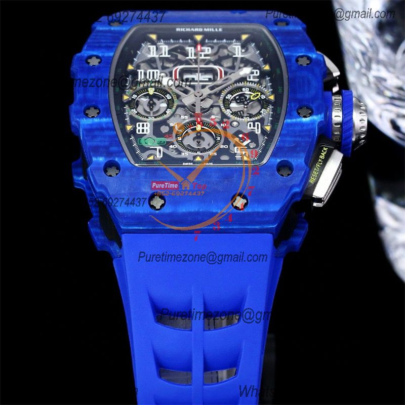 Home Richard Mille RM1103 Jean Todt Automatic Flyback A7750 Automatic Chronograph Mens Watch RMF Best Edition All Blue Rubber Strap CHS
