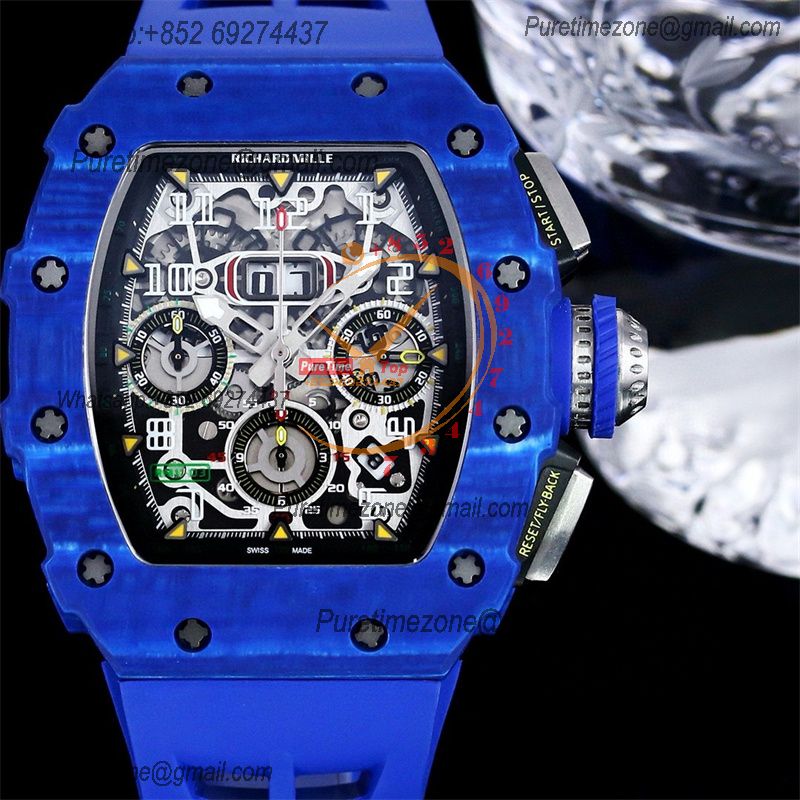 RM1103 Jean Todt Automatic Flyback A7750 Automatic Chronograph Mens Watch RMF Best Edition All Blue Rubber Strap CHS