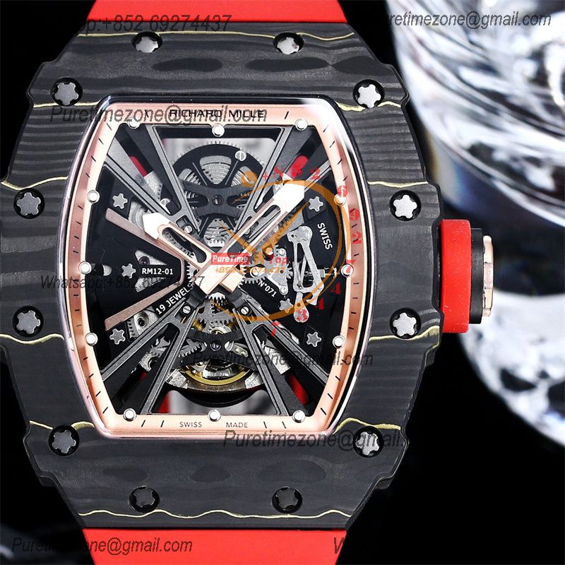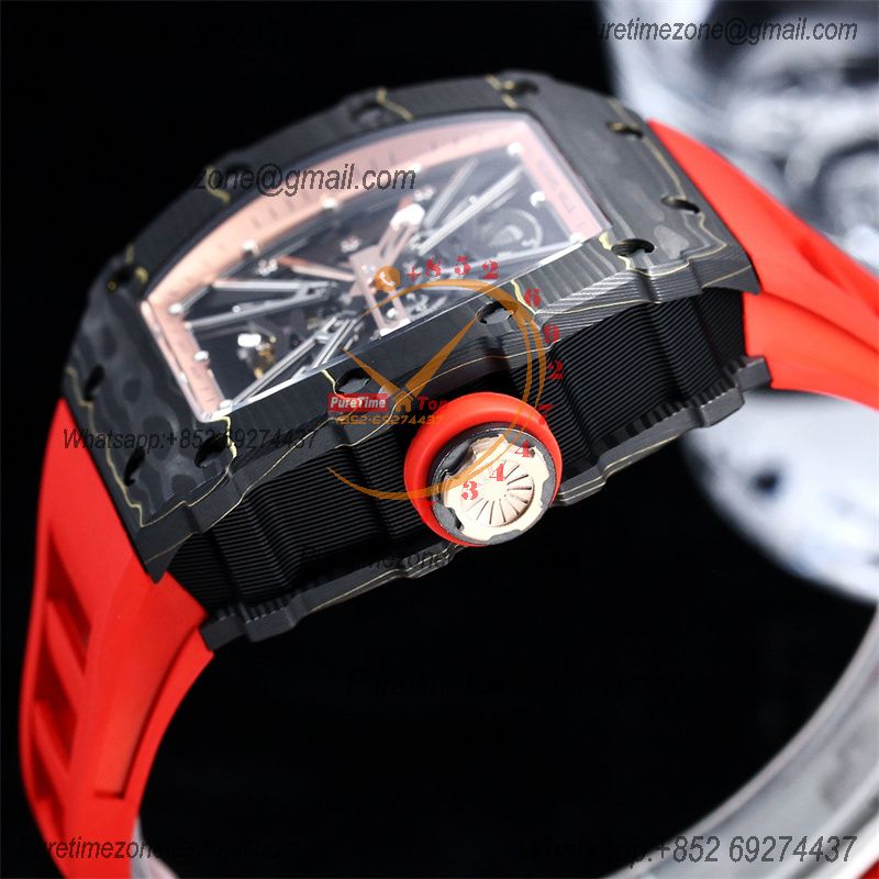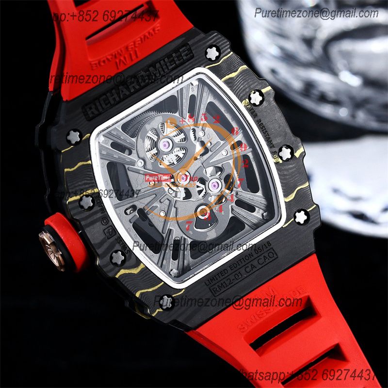 RM12-01 José Balvin Automatic Tourbillon Mens Watch RMF Black Carbon Fiber Skeleton Dial Red Rubber Strap CHS AAA $600.00 $400.00