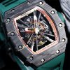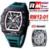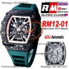 RM12-01 José Balvin Automatic Tourbillon Mens Watch RMF Black Carbon Fiber Skeleton Dial Green Rubber Strap CHS AAA