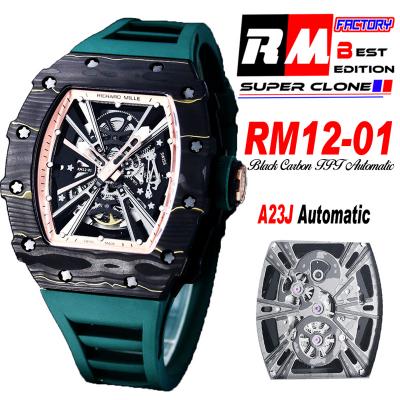 Home Richard Mille RM12-01 José Balvin Automatic Tourbillon Mens Watch RMF Black Carbon Fiber Skeleton Dial Green Rubber Strap CHS AAA