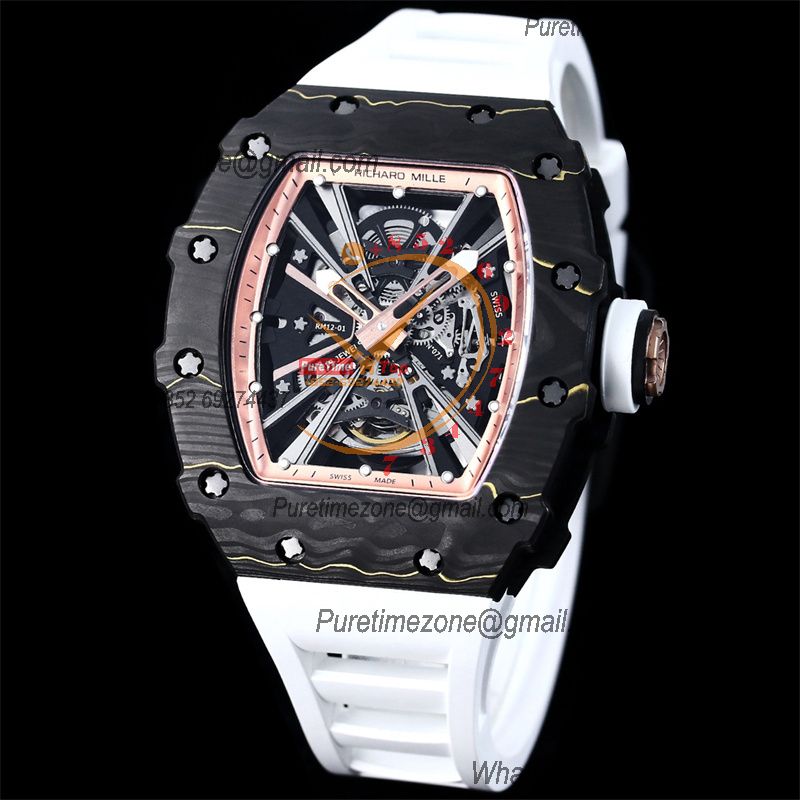 RM27-05 Flying Tourbillon Rafael Nadal White Carbon Automatic Mens Watch RMF Best Edition Black Skeleton Dial Lightweigh