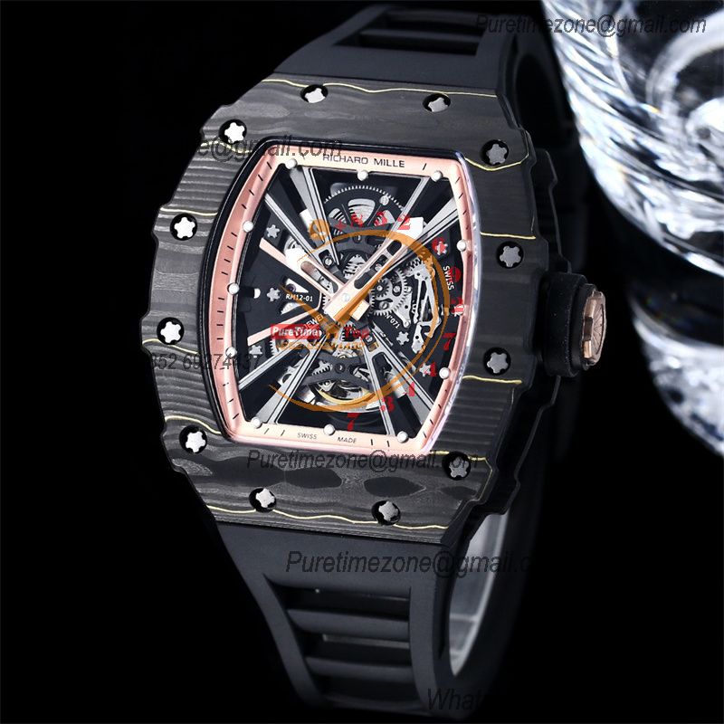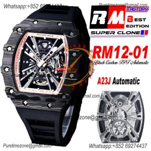 RM12-01 José Balvin Automatic Tourbillon Mens Watch RMF Carbon Fiber Skeleton Dial All Black Rubber Strap CHS AAA $600.00 $400.00
