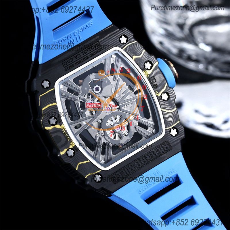 RM011 NTPT Carbon Chrono Felipe Massa A7750 Automatic Chronograph Mens Watch RMF Best Edition Blue Rubber CHS