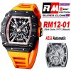 RM12-01 José Balvin Automatic Tourbillon Mens Watch RMF Black Carbon Fiber Skeleton Dial Orange Rubber Strap CHS AAA