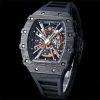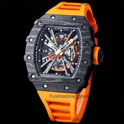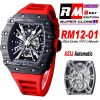 RM12-01 José Balvin Automatic Tourbillon Mens Watch RMF Black Carbon Fiber Skeleton Dial Red Rubber Strap CHS AAA