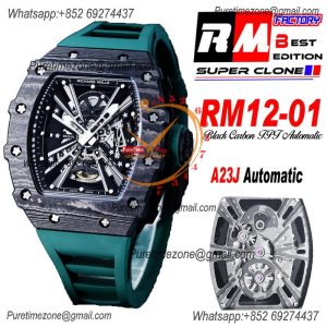 RM12-01 José Balvin Automatic Tourbillon Mens Watch RMF Black Carbon Fiber Skeleton Dial Green Rubber Strap CHS AAA $600.00 $400.00