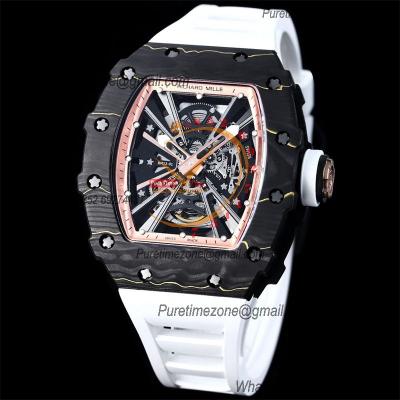RM12-01 José Balvin Automatic Tourbillon Mens Watch RMF Black Carbon Fiber Skeleton Dial White Rubber Strap CHS AAA