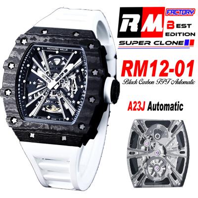 Home Richard Mille RM12-01 José Balvin Automatic Tourbillon Mens Watch RMF Black Carbon Fiber Skeleton Dial White Rubber Strap CHS AAA