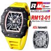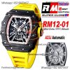 RM12-01 José Balvin Automatic Tourbillon Mens Watch RMF Black Carbon Fiber Skeleton Dial Yellow Rubber Strap CHS AAA