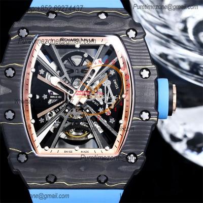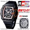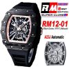 RM12-01 José Balvin Automatic Tourbillon Mens Watch RMF Carbon Fiber Skeleton Dial All Black Rubber Strap CHS AAA