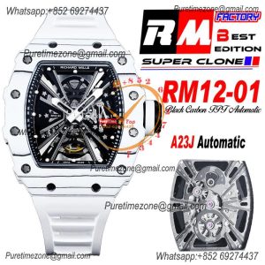 RM12-01 José Balvin Automatic Tourbillon Mens Watch RMF Carbon Fiber Skeleton Dial All White Rubber Strap CHS AAA $600.00 $400.00