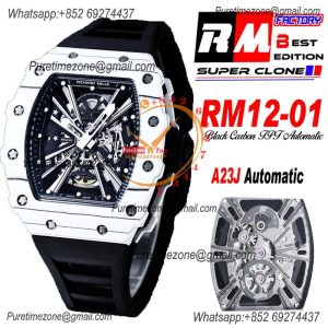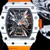 RM12-01 José Balvin Automatic Tourbillon Mens Watch RMF White Carbon Fiber Skeleton Dial Black Rubber Strap CHS AAA $600.00 $400.00