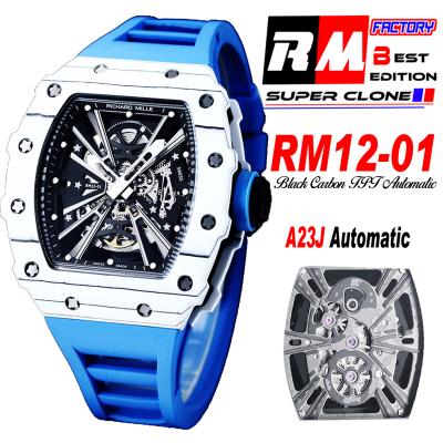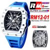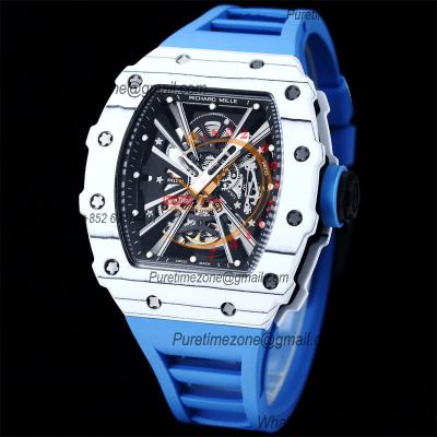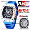 RM12-01 José Balvin Automatic Tourbillon Mens Watch RMF White Carbon Fiber Skeleton Dial Blue Rubber Strap CHS AAA
