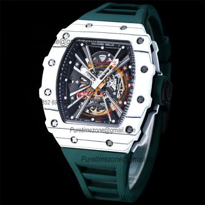 RM12-01 José Balvin Automatic Tourbillon Mens Watch RMF White Carbon Fiber Skeleton Dial Green Rubber Strap CHS AAA $600.00 $400.00